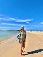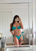 Step into the spotlight with the Top & Bottom Bikini Set - Brazilian High Cut, designed by Ladda and meticulously handmade to capture your daring essence. This exotic two-piece features a high-cut silhouette that accentuates your curves while offering a playful and confident look. Perfect for those who want to make a statement at the beach or pool, it combines bold style with comfortable wear. Available in two striking colours—firebrick and turquoise—this bikini set lets you express your fearless personality and enjoy unforgettable summer moments with flair.